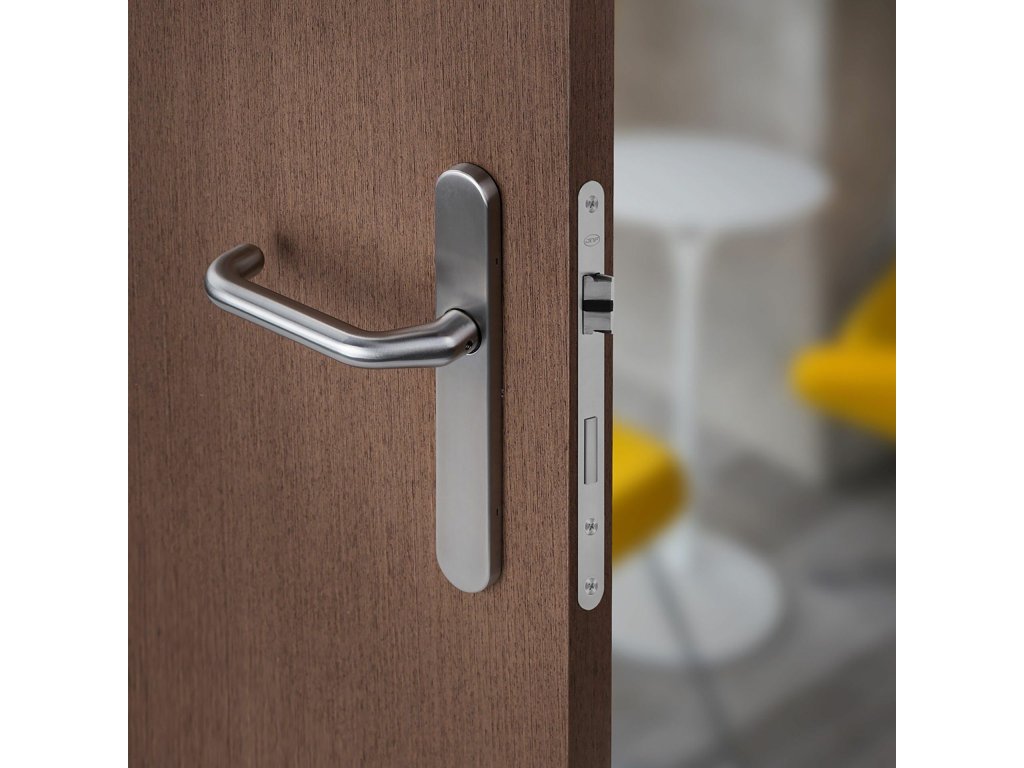 Štítová kľučka na interiérové dvere s oválnym štítom je vyrobená z vysokokvalitnej nehrdzavejúcej ocele, známej ako nerez a je povrchovo upravená. Kľučka obsahuje vratný mechanizmus.