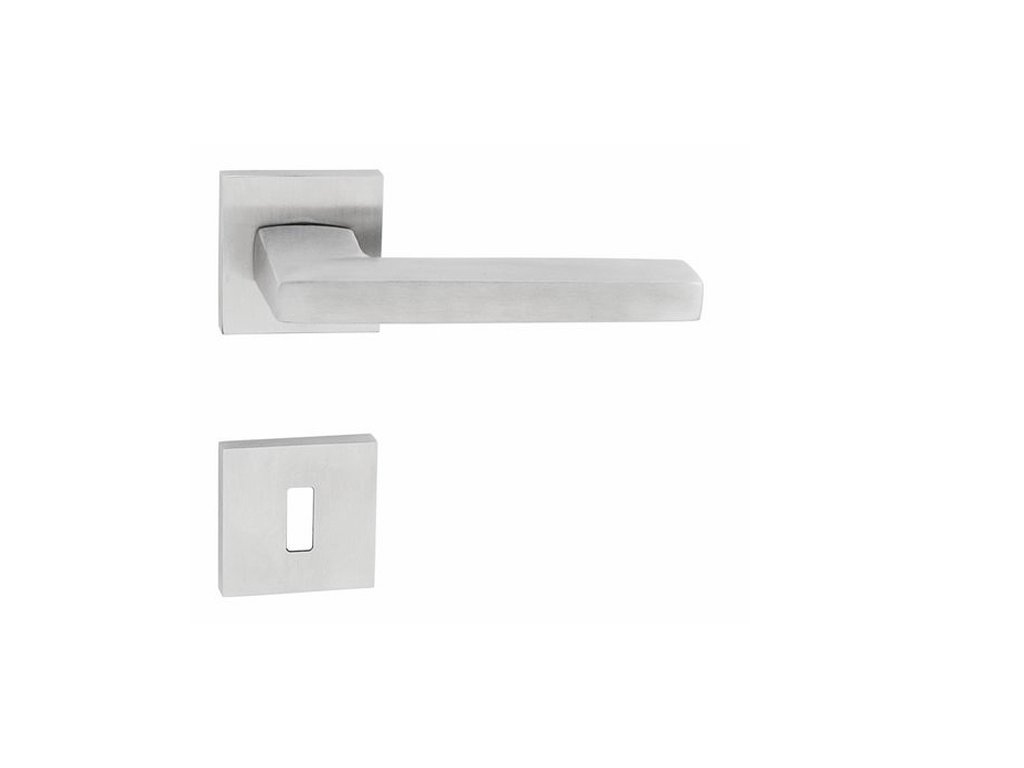 Rozetová kľučka na interiérové dvere s hranatou rozetou je vyrobená z vysokokvalitnej nehrdzavejúcej ocele, známej ako nerez a je povrchovo upravená.