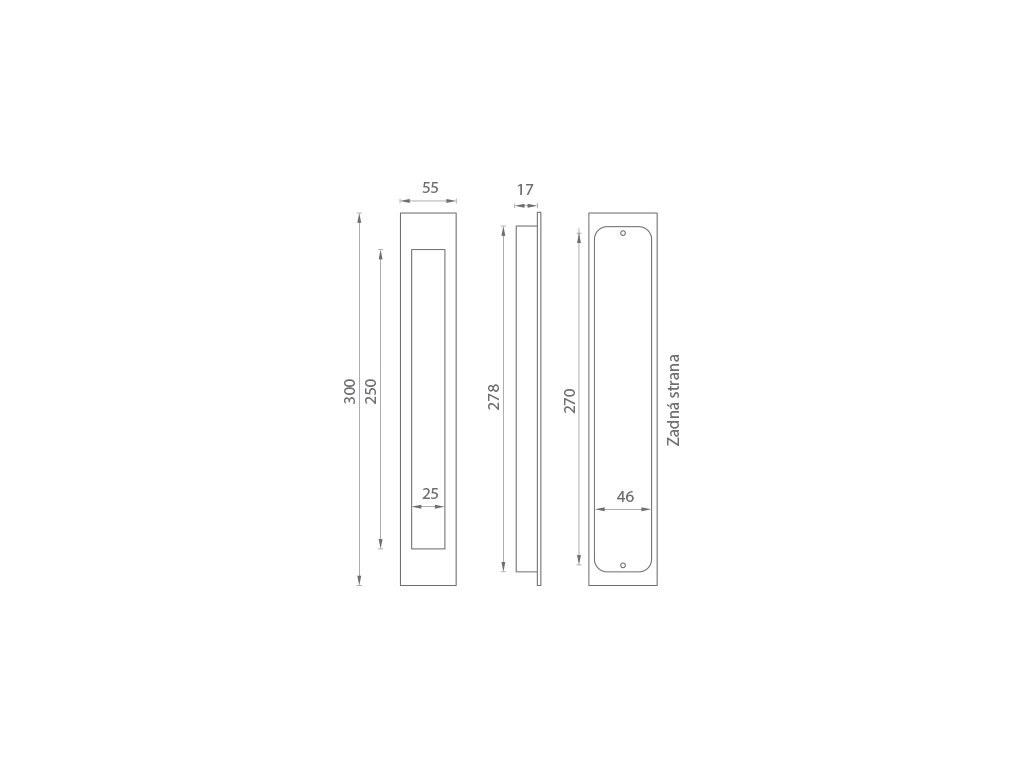 Hranatá mušľa je vyrobená z vysokokvalitnej nehrdzavejúcej ocele, známej ako nerez a je povrchovo upravená. Mušľa má výšku 300 mm, šírku 55 mm, zádlab 17 mm a celkovú hrúbku 19 mm. Krytka s pružinou. Montáž mušle lepením. Cena je uvedená za kus.