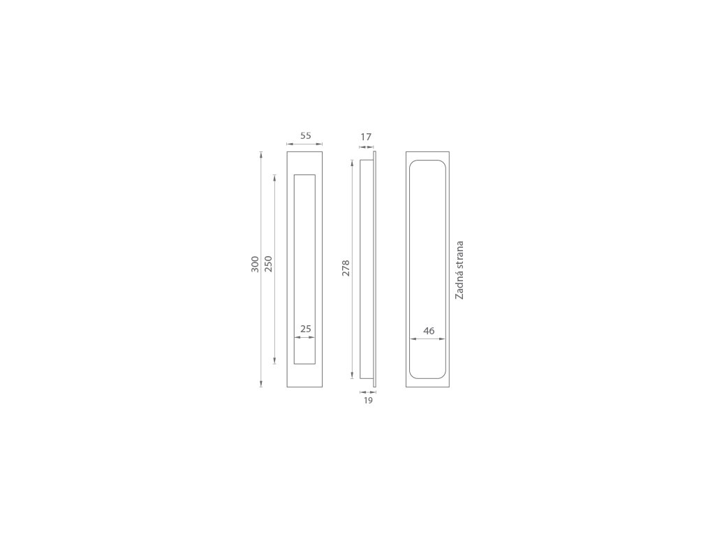 Hranatá mušľa je vyrobená z vysokokvalitnej nehrdzavejúcej ocele, známej ako nerez a je povrchovo upravená. Mušľa má výšku 300 mm, šírku 55 mm, zádlab 17 mm a celkovú hrúbku 19 mm. Montáž mušle lepením. Cena je uvedená za kus.