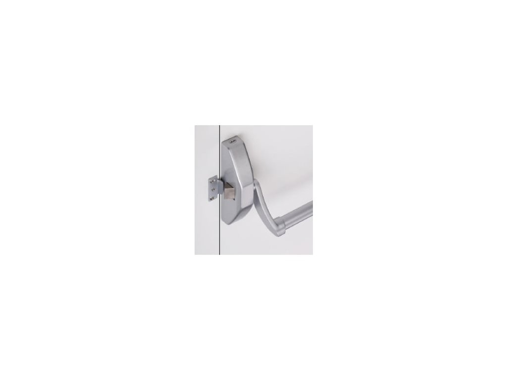 Panikové kovanie pre jednokrídlové dvere s jednobodovým zaistením. Zatváranie cez bočnú oceľovú západku. Bez prístupu z vonkajšej strany.