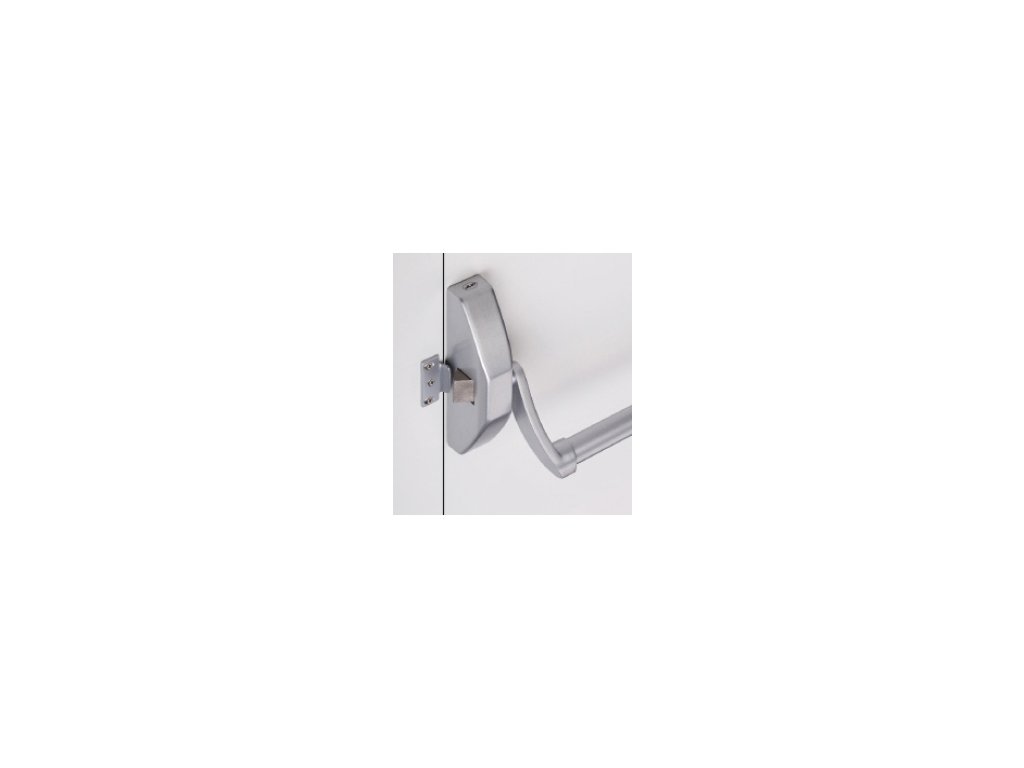 Panikové kovanie pre jednokrídlové dvere s jednobodovým zaistením. Zatváranie cez bočnú oceľovú západku. Otváranie zvonku pomocou kľúča a kľučky. Štítová kľučka a cylindrická vložka sú súčasťou balenia.