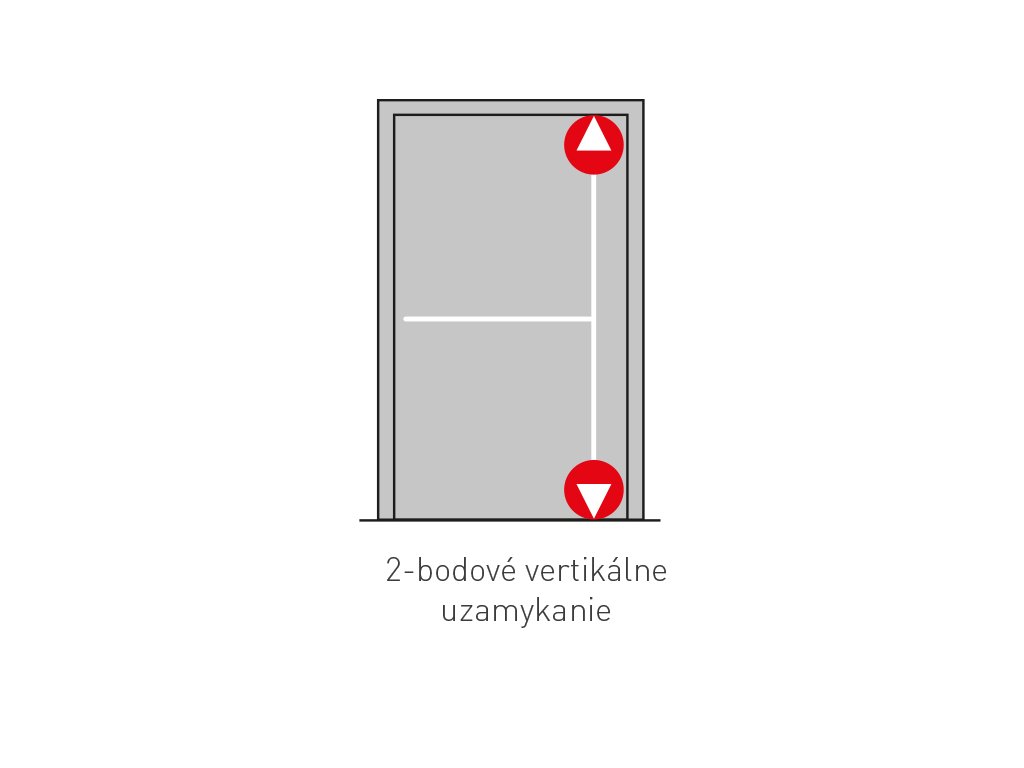 Reverzibilné panikové kovanie. Uzamykanie dverí hornou a dolnou západkou. Otváranie pomocou kľúča a kľučky zvonku. Štítová kľučka a cylindrická vložka sú súčasťou balenia.