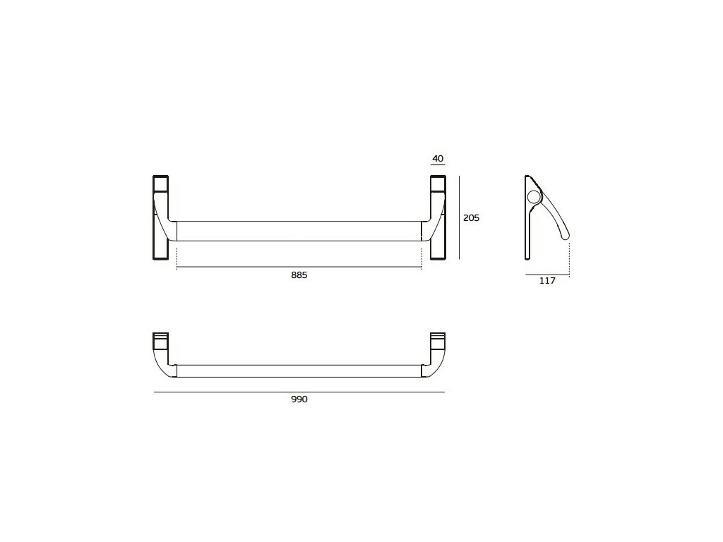 Hliníkové panikové kovanie s ciernym plastom. Použitelné s protipožiarnym panikovým zámkom. IN.20.960 /