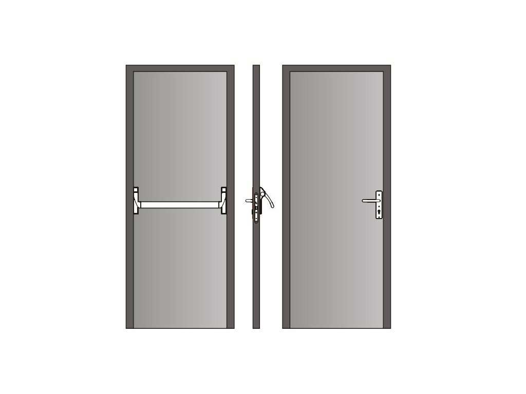 Pre otváranie z vonku možnosť dokúpenia štítovej kľučky k panikovému kovaniu FA.03.940 a jednostrannej cylindrickej vložky GE - AP 1000.