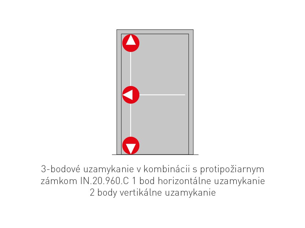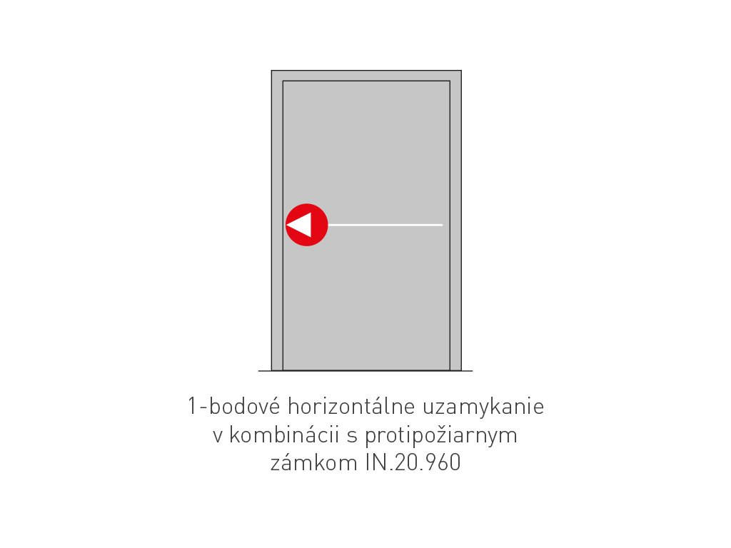 Reverzibilné panikové kovanie. Panikové kovanie je kombinovateľné s panikovým protipožiarnym zámkom (IN.20.960). Otváranie pomocou kľúča zvonku. Kľučka, cylindrická vložka, delený štvorhran a redukcia nie sú súčasťou balenia.