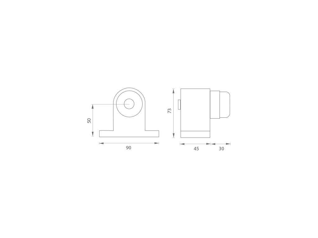 Priemyselná zarážka dverí s výškou 73 mm - pre ťažké dvere. Je vyrobená z vysokokvalitnej nehrdzavejúcej ocele, známej ako nerez a je povrchovo upravená, montáž zarážky skrutkovaním samorezka