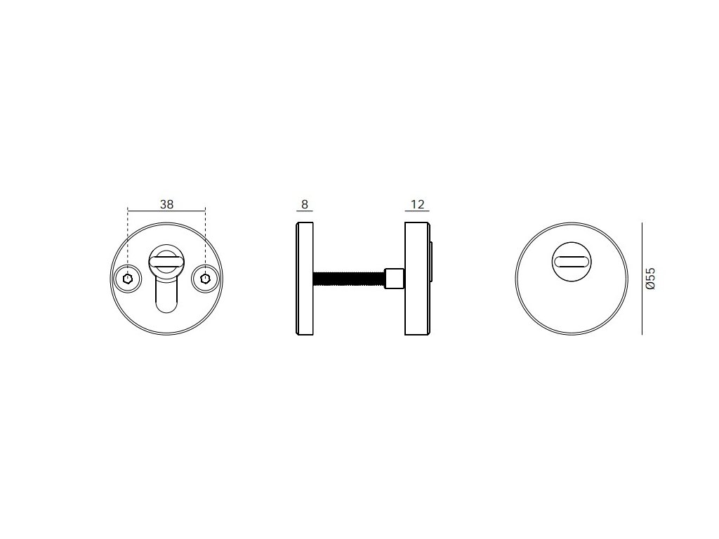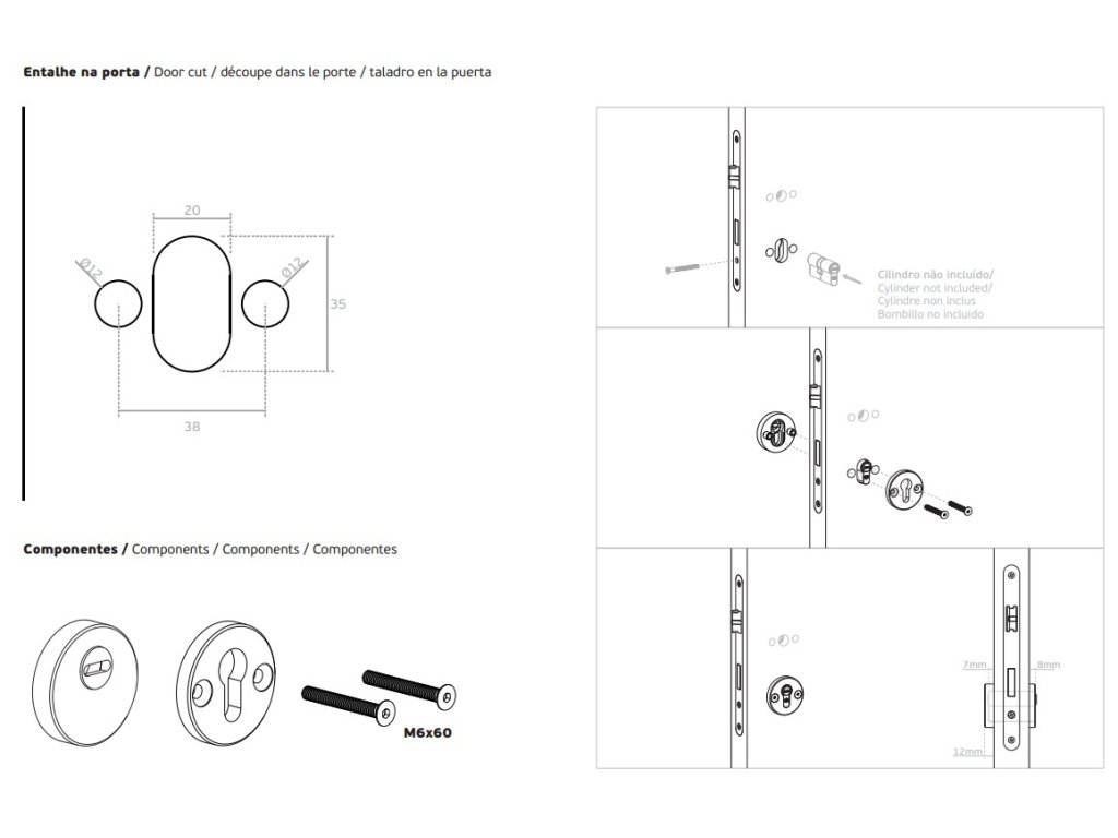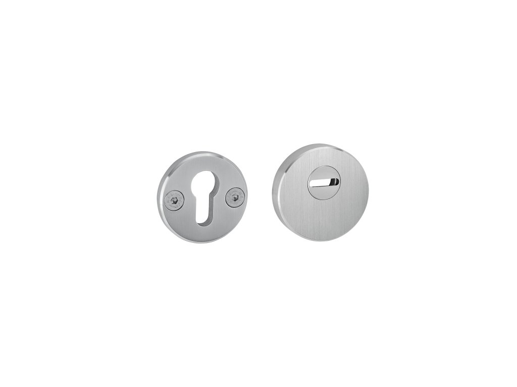 Bezpečnostná okrúhla rozeta s prekrytím cylindrickej vložky je vyrobená z nehrdzavejúcej ocele a a je povrchovo upravená.