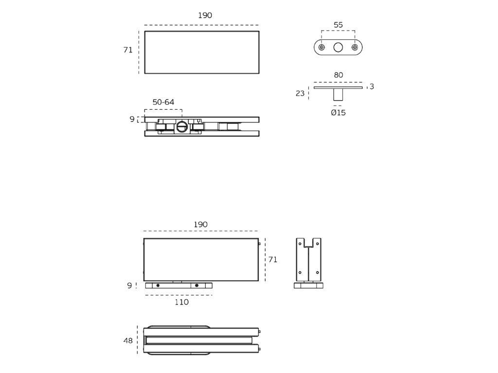 Hydraulický pivotový samozatvárací set IN.81.203 pre sklenené dverné krídlo je vyrobený z vysokokvalitnej nehrdzavejúcej ocele.
