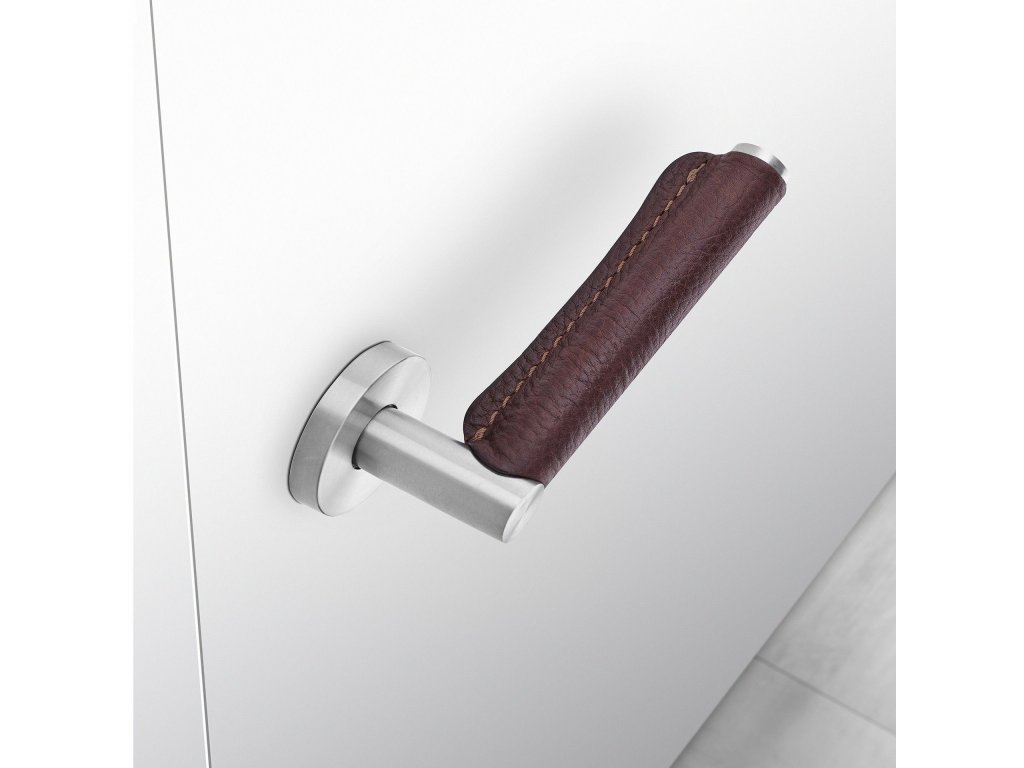 Originálna kľučka SKIN je vyrobená z vysokokvalitnej nehrdzavejúcej ocele s povrchovou úpravou. Špeciálny efekt vytvára prírodná béžová koža, ktorá obopína rukoväť kľučky. Je príjemná na dotyk a pôsobivo dotvára každý interiér.
