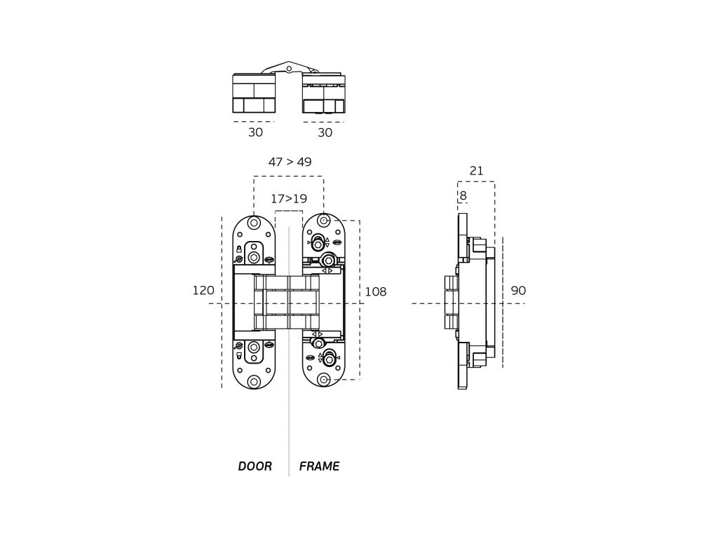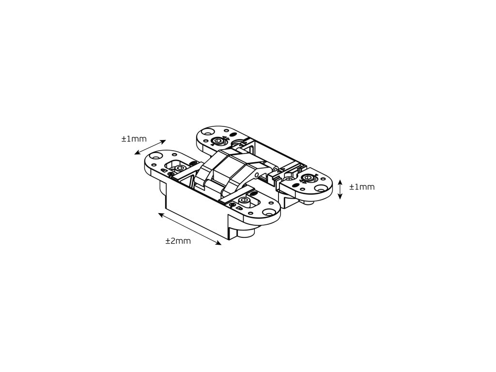 Skrytý 3D záves IN.05.064 je vyrobený zo zliatiny zinku s povrchovou úpravou. Kompletne 3D nastaviteľný záves pre bezfalcové dvere s masívnou drevenou, obložkovou, oceľovou alebo hliníkovou zárubňou.