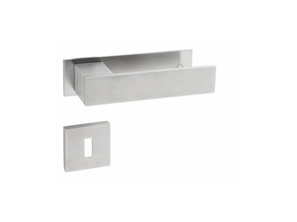 Rozetová kľučka na interiérové dvere s obdĺžnikovým plechom je vyrobená z vysokokvalitnej nehrdzavejúcej ocele, známej ako nerez a je povrchovo upravená.