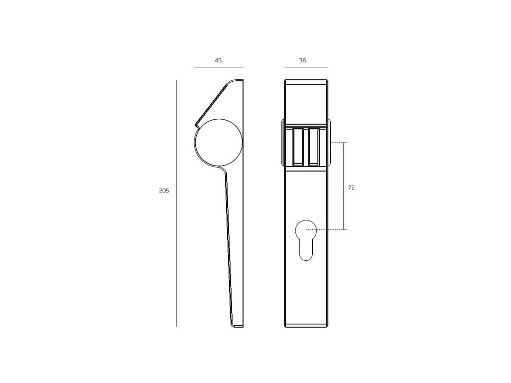 Štít vhodný pre panikové kovanie. Kombinovateľnaý s panikovým protipožiarnym zámkom IN.20.960/960.C. Cylindrická vložka nie je súčasťou balenia.