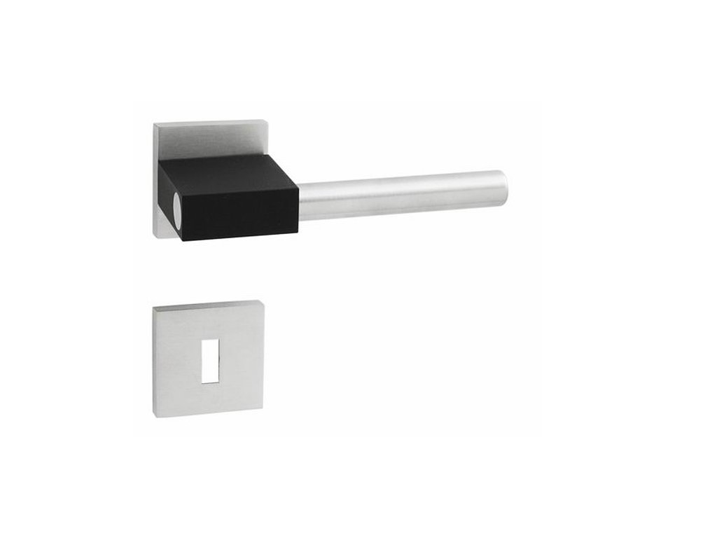 Rozetová kľučka na interiérové dvere s hranatou rozetou je vyrobená z vysokokvalitnej nehrdzavejúcej ocele, známej ako nerez a je povrchovo upravená.