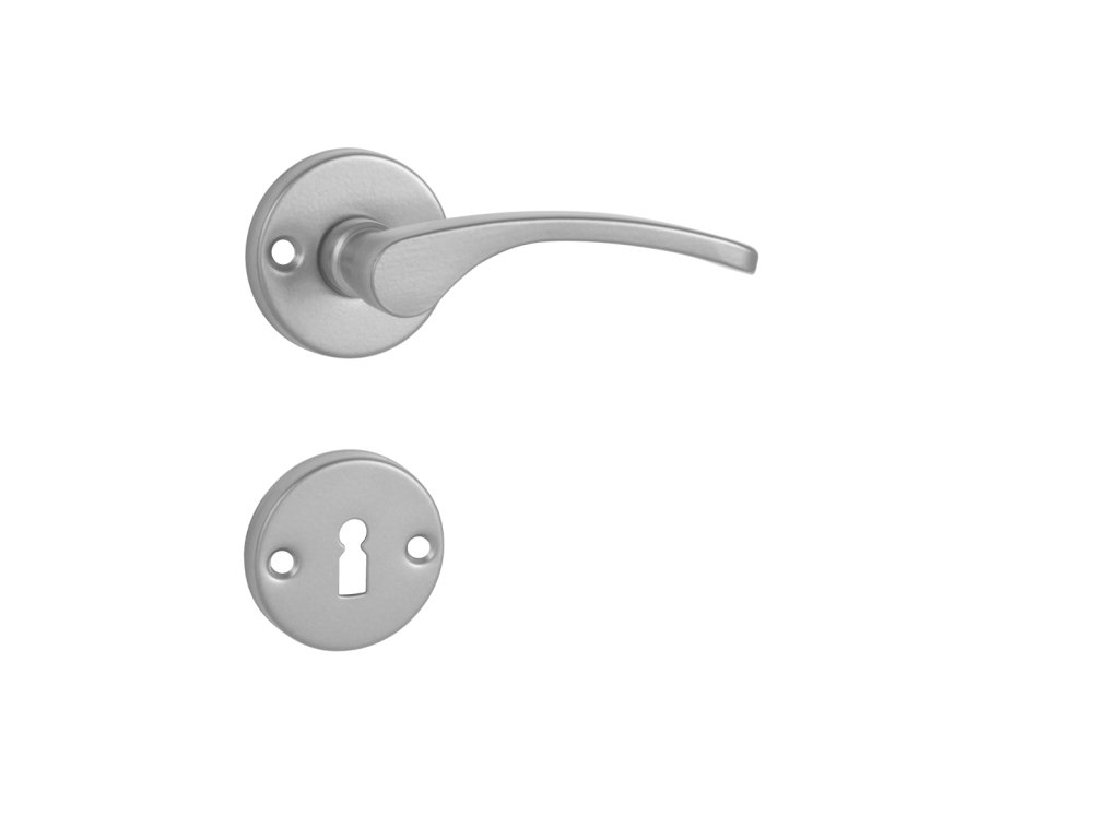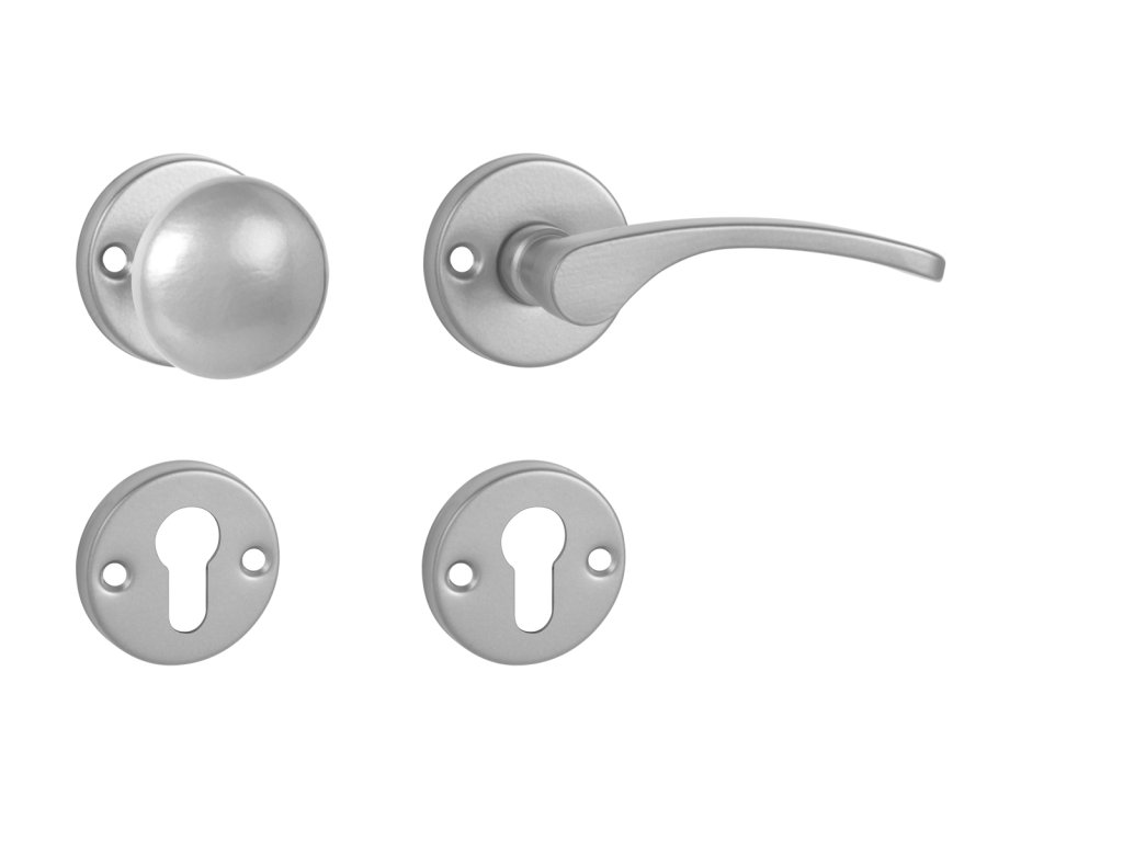 Rozetová kľučka na interiérové dvere s okrúhlou rozetou je vyrobená z hliníka a je povrchovo upravená. Kľučka neobsahuje vratný mechanizmus – pružinu.