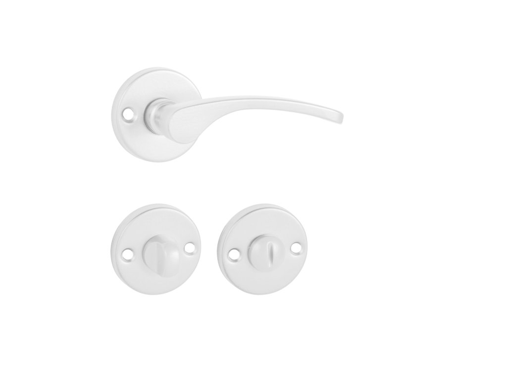 Rozetová kľučka na interiérové dvere s okrúhlou rozetou je vyrobená z hliníka a je povrchovo upravená. Kľučka neobsahuje vratný mechanizmus – pružinu.