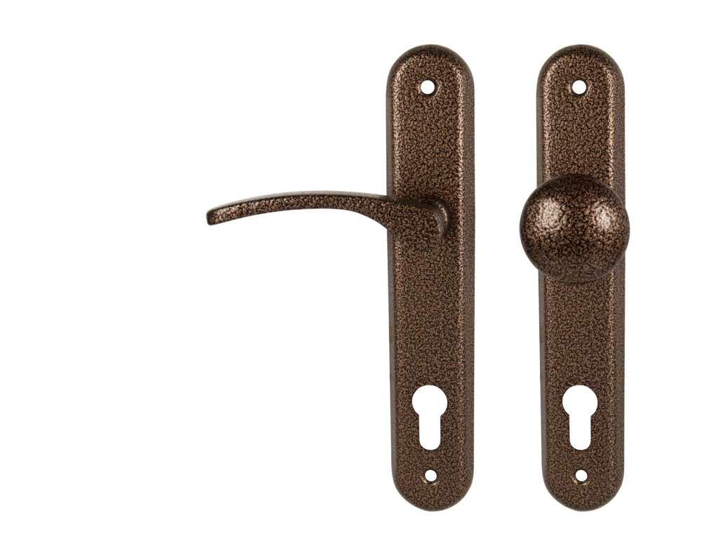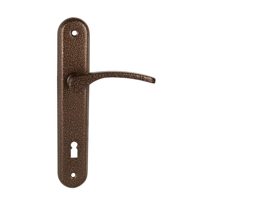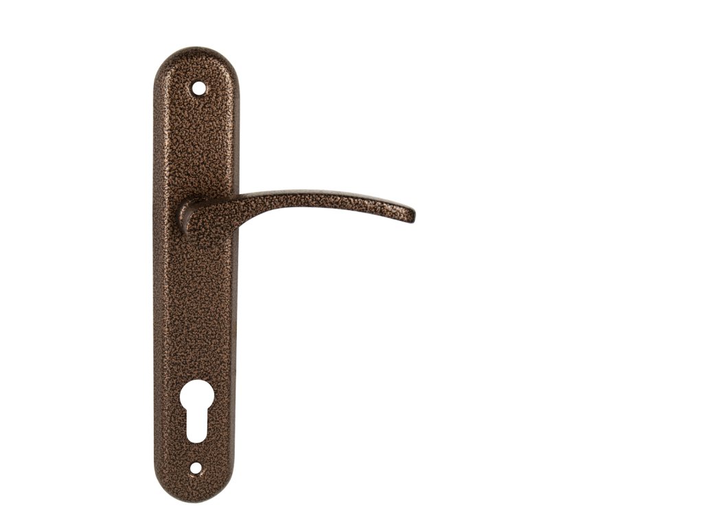 Štítová kľučka na interiérové dvere s oválnym štítom je vyrobená z hliníka a je povrchovo upravená. Kľučka neobsahuje vratný mechanizmus.