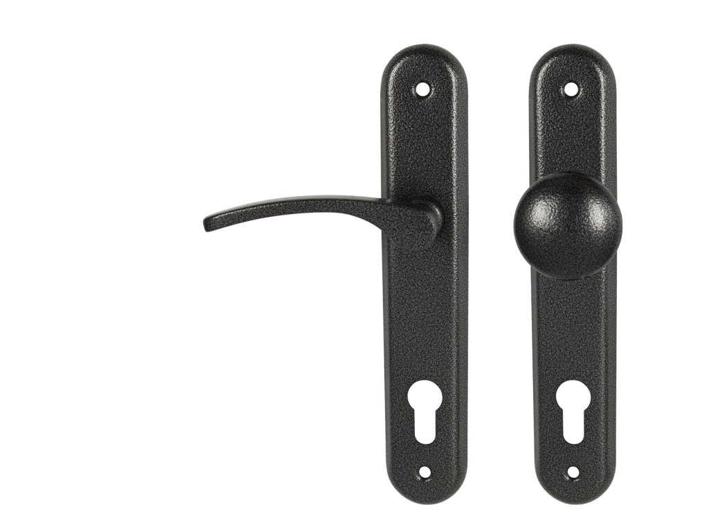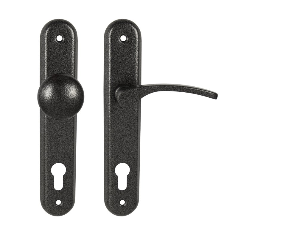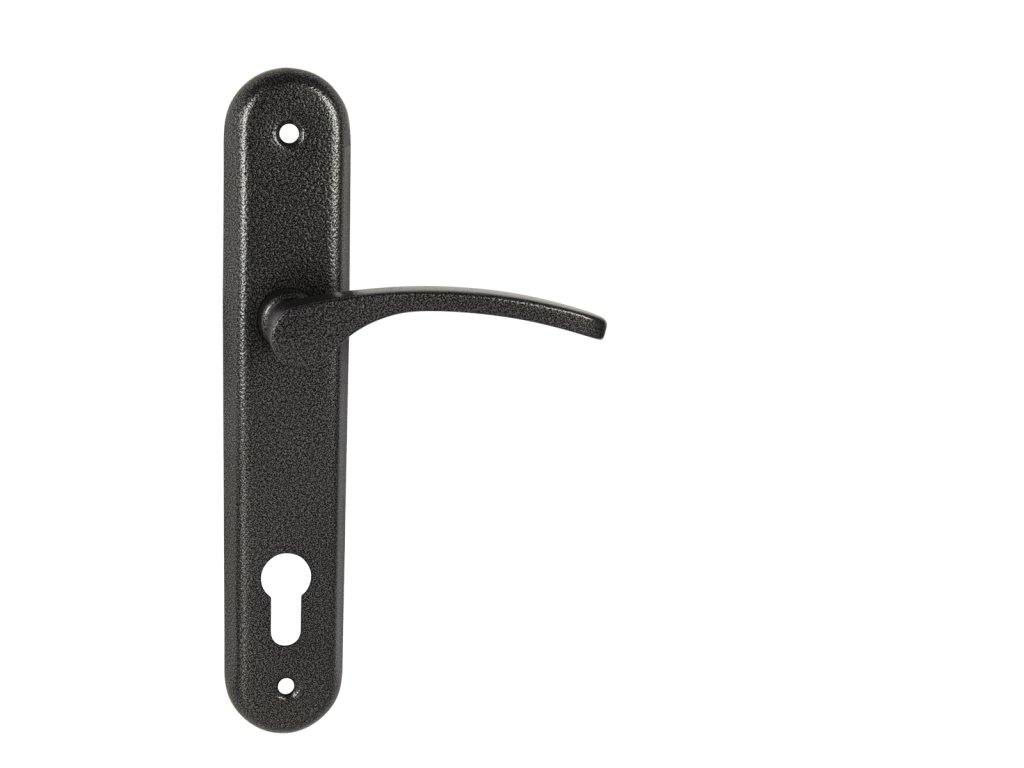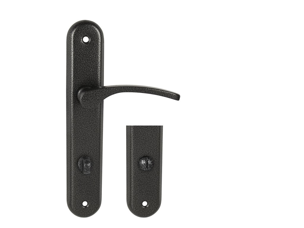 Štítová kľučka na interiérové dvere s oválnym štítom je vyrobená z hliníka a je povrchovo upravená. Kľučka neobsahuje vratný mechanizmus.