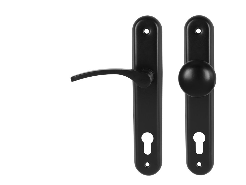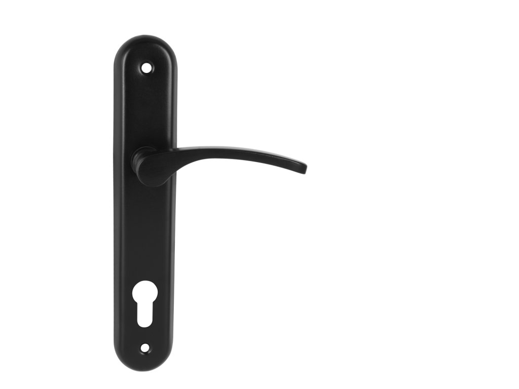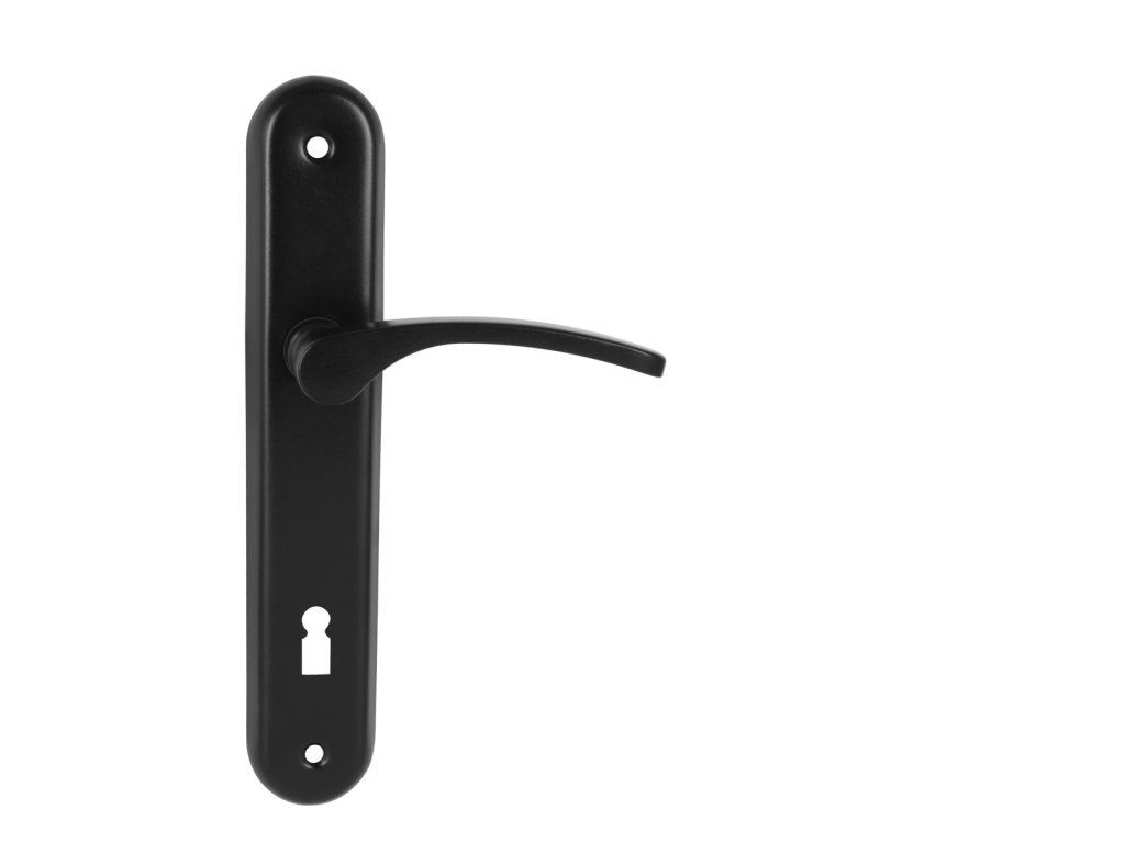 Štítová kľučka na interiérové dvere s oválnym štítom je vyrobená z hliníka a je povrchovo upravená. Kľučka neobsahuje vratný mechanizmus.