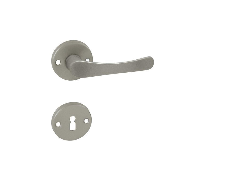 Rozetová kľučka na interiérové dvere s okrúhlou rozetou je vyrobená z hliníka a je povrchovo upravená. Rozeta má priemer 54 mm a hrúbku 8 mm.