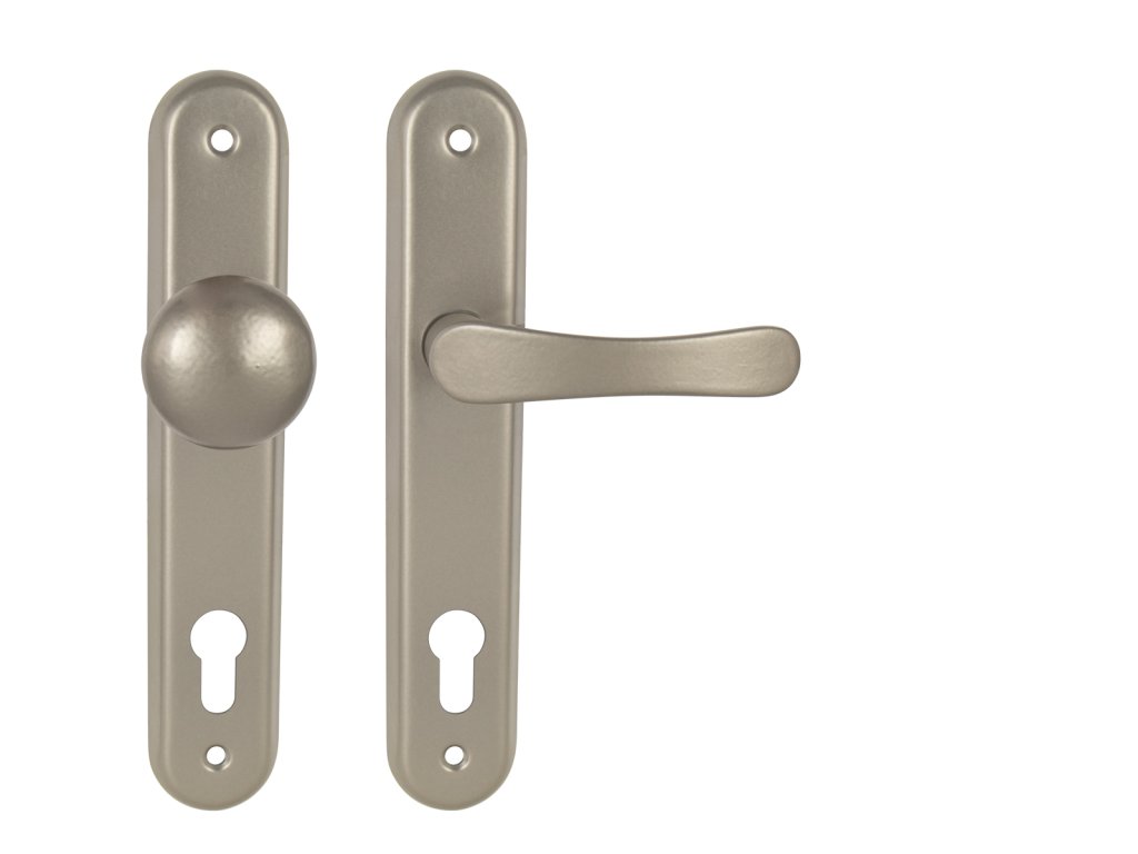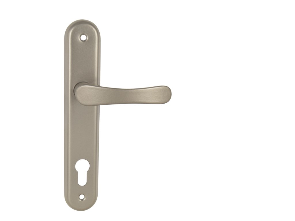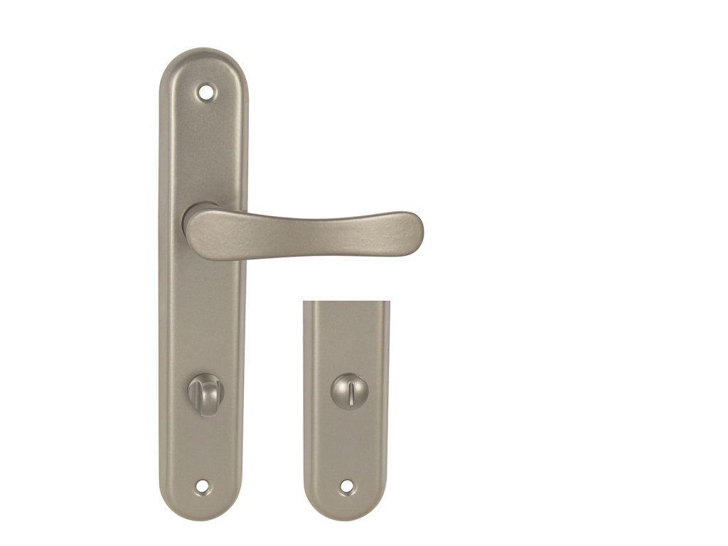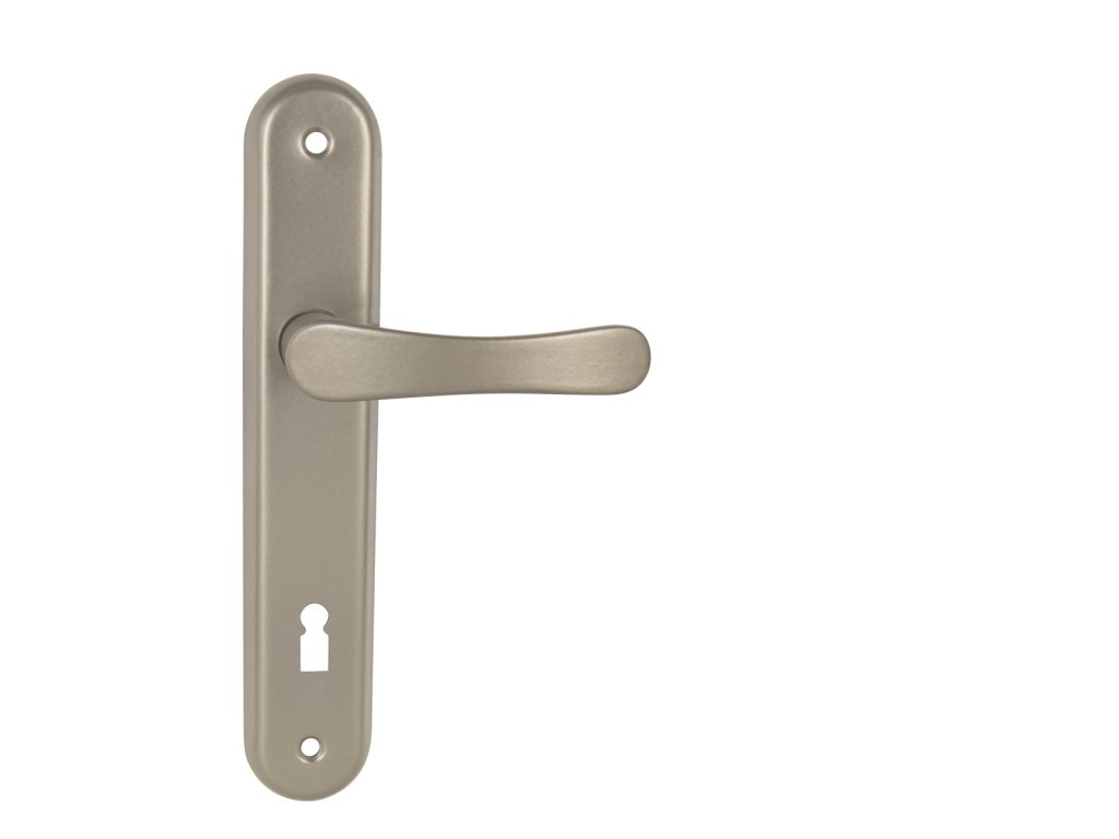 Štítová kľučka na interiérové dvere s oválnym štítom je vyrobená z hliníka a je povrchovo upravená. Kľučka neobsahuje vratný mechanizmus.