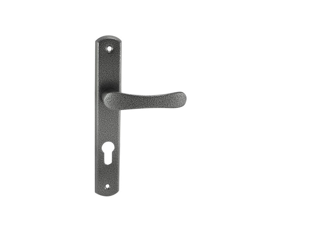 Štítová kľučka na interiérové dvere s úzkym oválnym štítom je vyrobená z hliníka a je povrchovo upravená. Kľučka neobsahuje vratný mechanizmus.