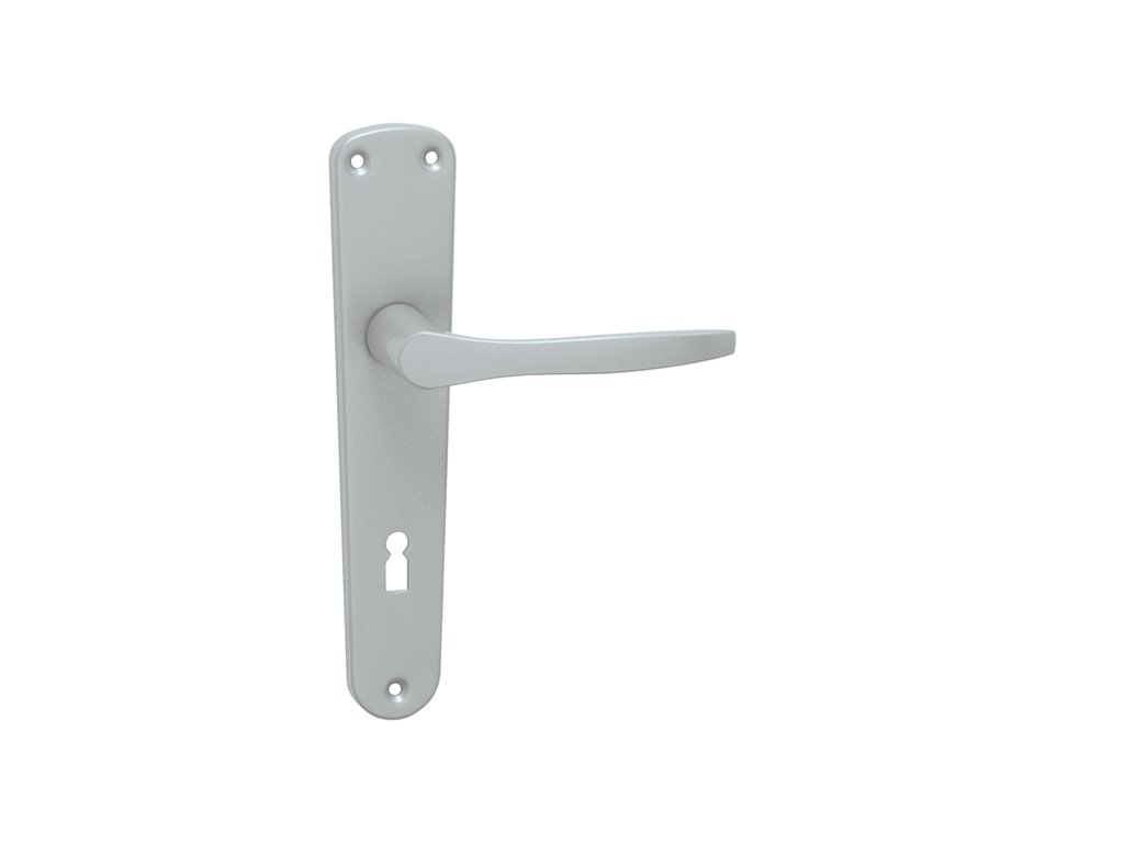 Štítová kľučka na interiérové dvere s oválnym štítom je vyrobená z hliníka a je povrchovo upravená. Kľučka neobsahuje vratný mechanizmus.