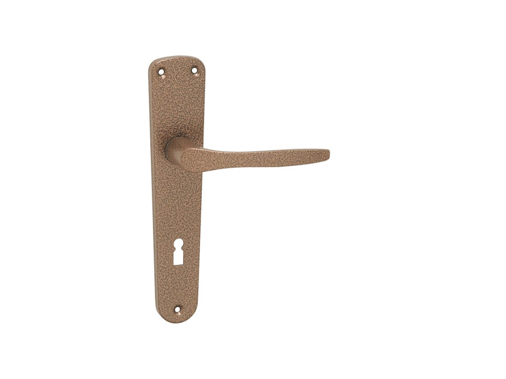 Štítová kľučka na interiérové dvere s oválnym štítom je vyrobená z hliníka a je povrchovo upravená. Kľučka neobsahuje vratný mechanizmus.