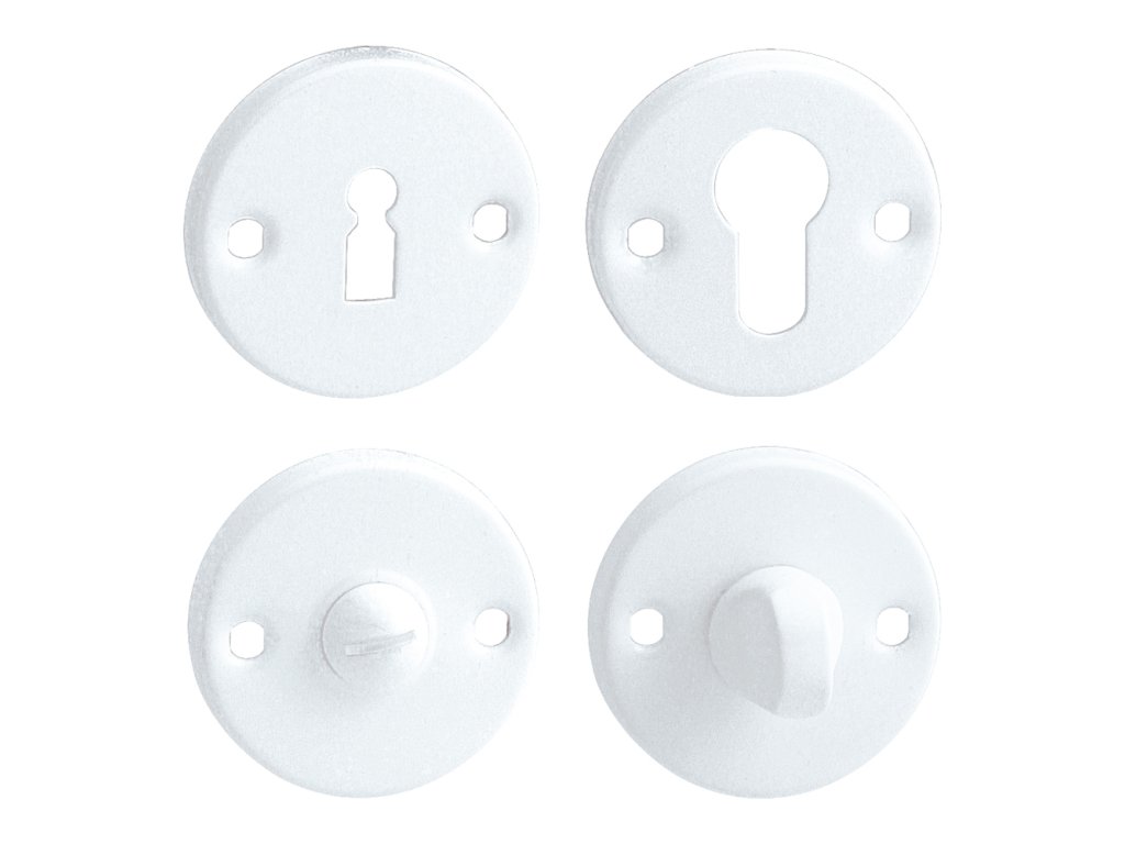 Okrúhla rozeta je vyrobená z hliníka a je povrchovo upravená. Rozeta má priemer 54 mm, hrúbku 8 mm a oválny otvor pre interiérový kľúč (BB), otvor pre cylindrickú vložku (PZ) alebo WC set s vmontovaným kľúčom. Balenie obsahuje 2 kusy roziet (pár) a rozety WC sú v balení ako set.Dodatočné parametre