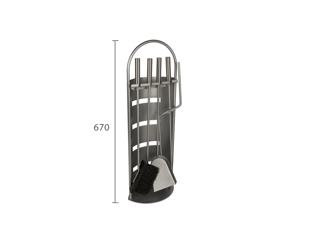Praktická sada nerezového krbového náradia je ideálnym doplnkom ku každému krbu či kachliam. Táto 4-dielna sada obsahuje všetky nevyhnutné nástroje - metličku, lopatku, kliešte a kutáč na jednoduchú a bezpečnú manipuláciu s ohňom a údržbu krbového priestoru.