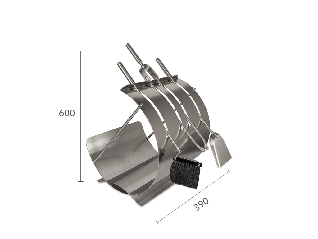 Sada krbového náradia v elegantnom nerezovom prevedení je praktickým doplnkom ku každému krbu či kachliam. Náradie obsahuje všetky nevyhnutné nástroje - metličku, lopatku, kliešte a úložný priestor na drevo. Sada umožní jednoduchú a bezpečnú manipuláciu s ohňom a údržbu krbového priestoru.
