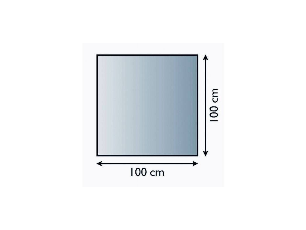 Sklenená podložka pod krbové kachle má rozmery 100 cm x 100 cm.