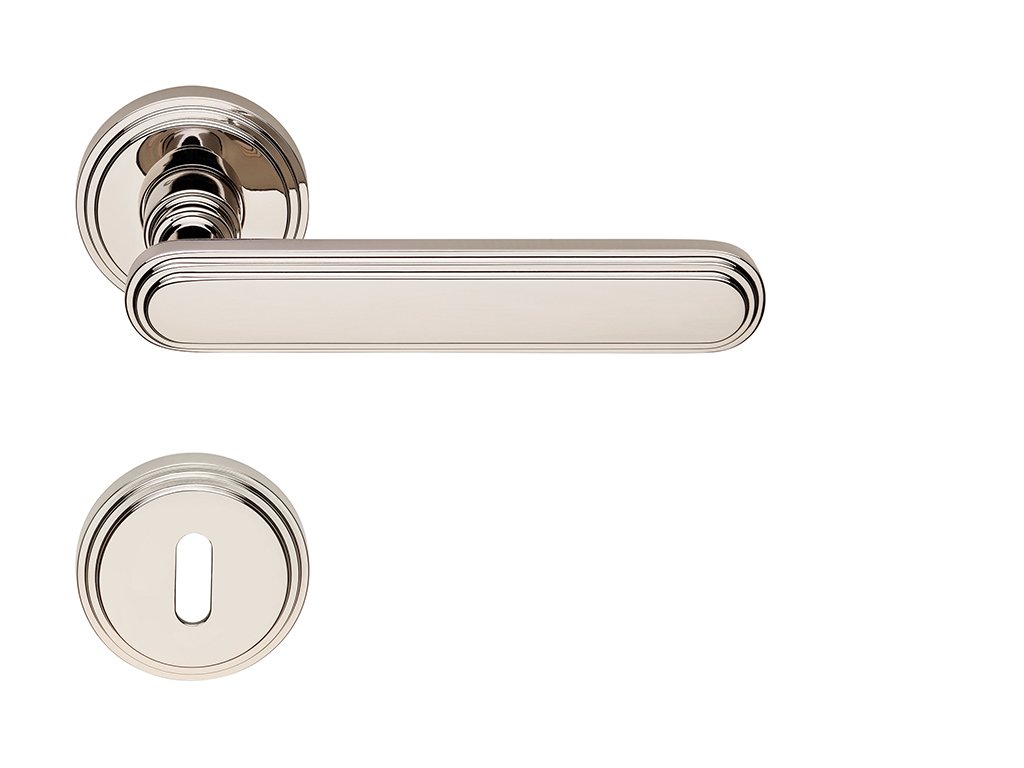 Rozetová kľučka na interiérové dvere s okrúhlou rozetou je vyrobená z materiálov vysokej kvality - mosadz a je povrchovo upravená. Rozeta má priemer 53 mm.Kľučky v kolekcii CHIC sa vyznačujú klasickým štýlom a výlučne kruhovými líniami. Silueta rukoväte bez ostrých rohov zabezpečuje veľmi pohodlné držanie a robí kľučku bezpečnou aj v domácnostiach s prítomnosťou detí.