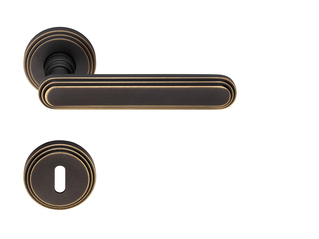 Rozetová kľučka na interiérové dvere s okrúhlou rozetou je vyrobená z materiálov vysokej kvality - mosadz a je povrchovo upravená. Rozeta má priemer 53 mm.Kľučky v kolekcii CHIC sa vyznačujú klasickým štýlom a výlučne kruhovými líniami. Silueta rukoväte bez ostrých rohov zabezpečuje veľmi pohodlné držanie a robí kľučku bezpečnou aj v domácnostiach s prítomnosťou detí.