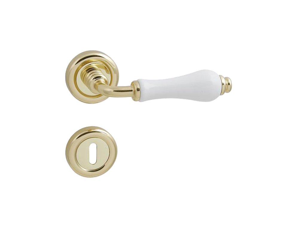 Rozetová kľučka na interiérové dvere s okrúhlou rozetou je vyrobená z materiálov vysokej kvality - mosadz a porcelán a je povrchovo upravená. Rozeta má priemer 50 mm.