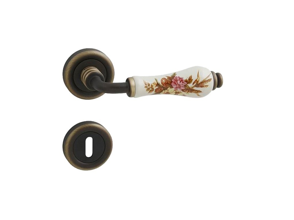 Rozetová kľučka na interiérové dvere s okrúhlou rozetou je vyrobená z materiálov vysokej kvality - mosadz a porcelán a je povrchovo upravená. Rozeta má priemer 50 mm.