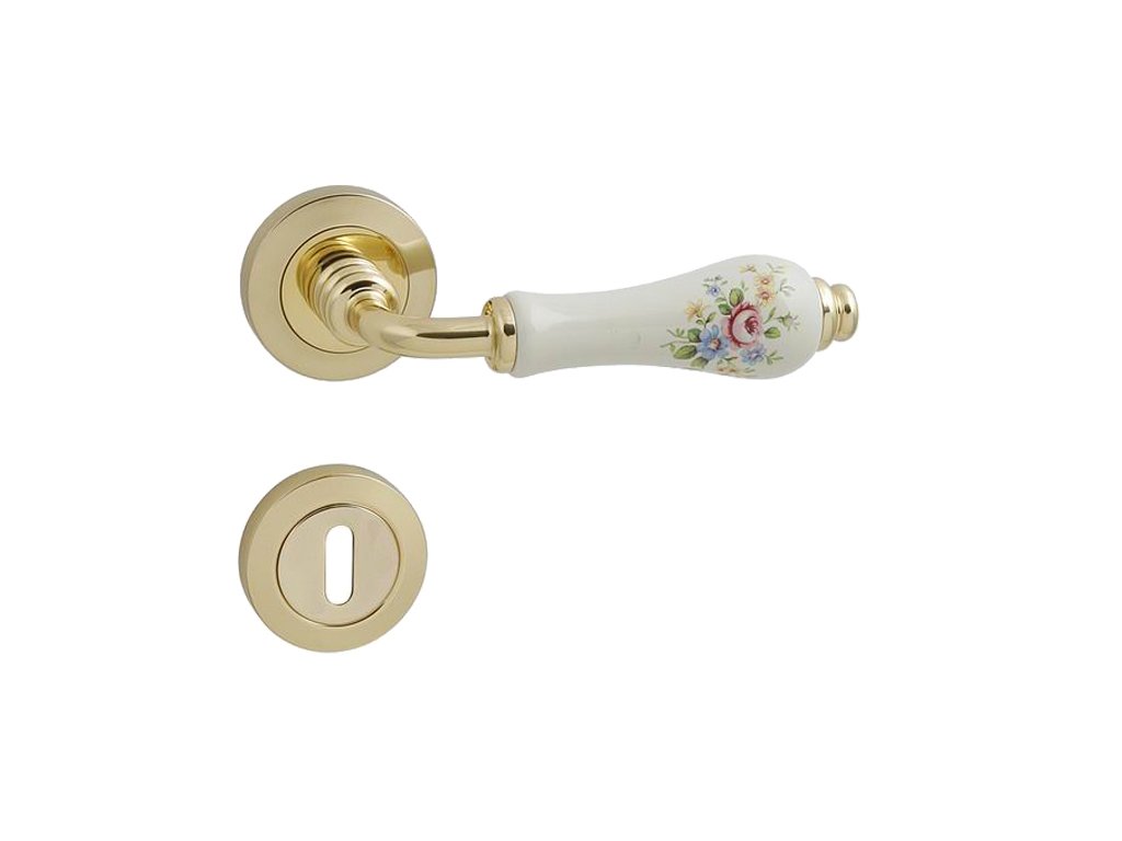 Rozetová kľučka na interiérové dvere s okrúhlou rozetou je vyrobená z materiálov vysokej kvality - mosadz a porcelán a je povrchovo upravená. Rozeta má priemer 50 mm.