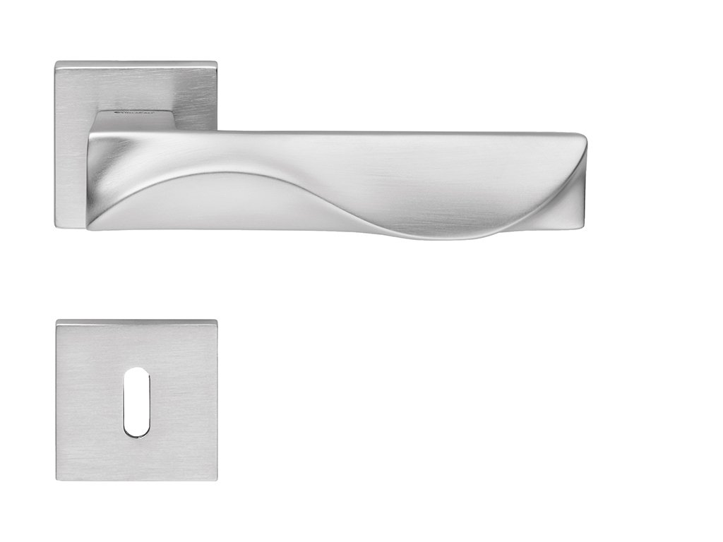 Rozetová kľučka na interiérové dvere s hranatou rozetou je vyrobená z materiálov vysokej kvality - mosadz a je povrchovo upravená.