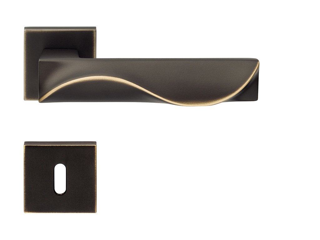 Rozetová kľučka na interiérové dvere s hranatou rozetou je vyrobená z materiálov vysokej kvality - mosadz a je povrchovo upravená.