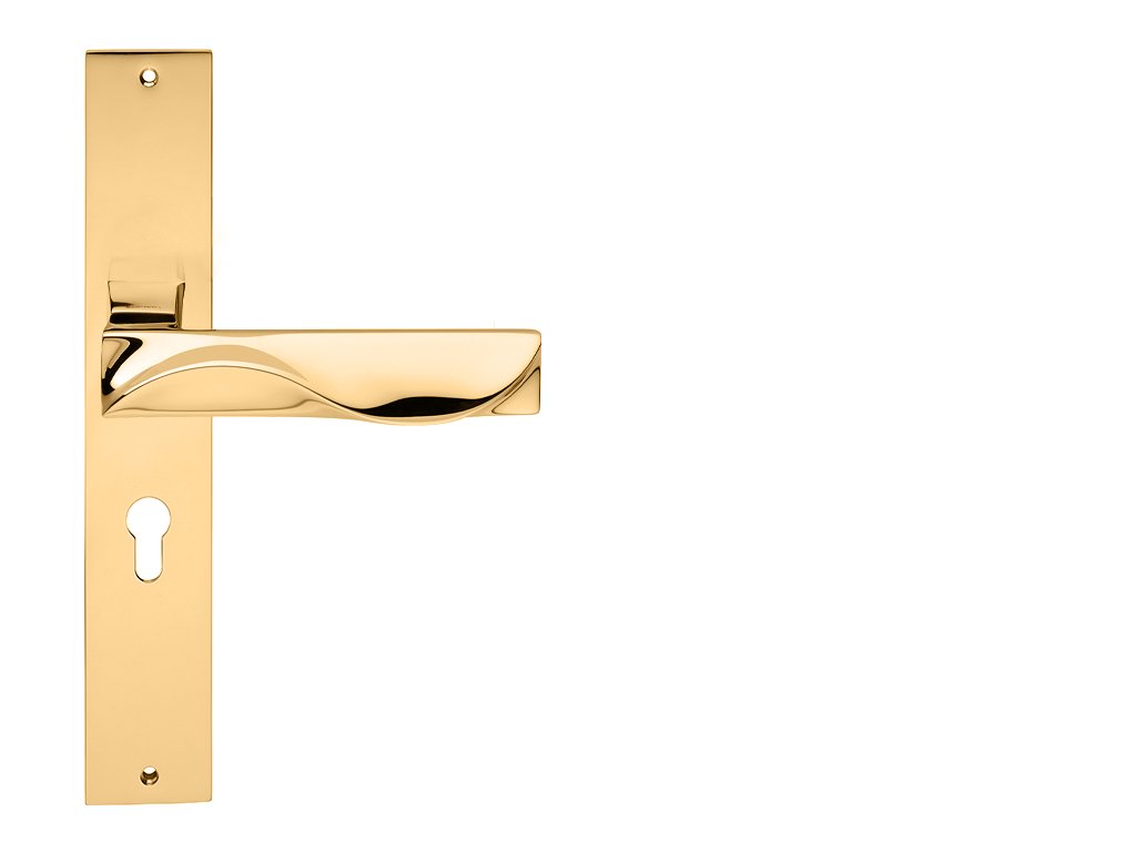Štítová kľučka na interiérové dvere s hranatým štítom je vyrobená z materiálov vysokej kvality - mosadz a je povrchovo upravená. Štít má rozmery 52 mm x 300 mm.Kľučka v exkluzívnom prevedení DUNA sa vyznačuje tvarmi, ktoré stelesňujú tajomstvo a majestátnosť dún na púšti. Rukoväť je pre užívateľa príjemná do ruky a zároveň pôsobí vizuálne veľmi jemne a elegantne.