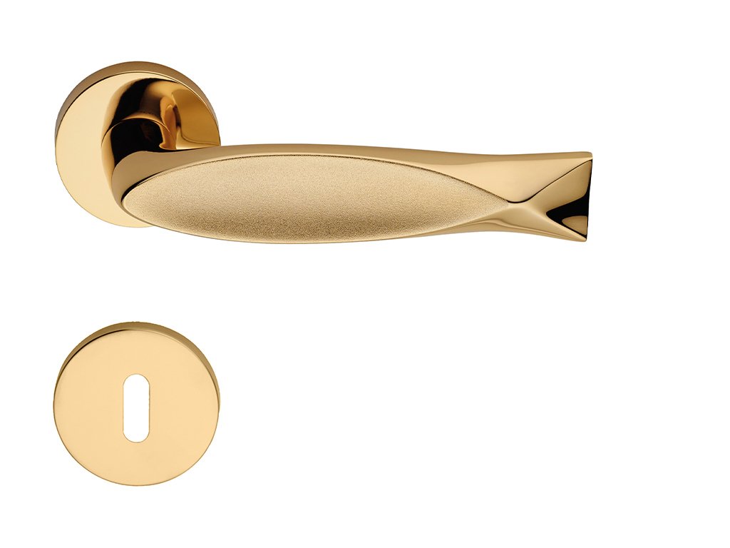 Rozetová kľučka FISH 602 na interiérové dvere s okrúhlou rozetou je vyrobená z materiálov vysokej kvality - mosadz a je povrchovo upravená.