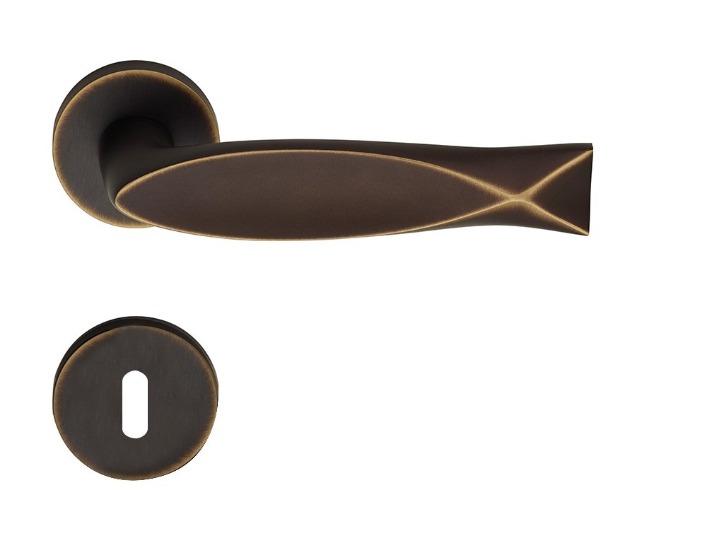 Rozetová kľučka FISH 602 na interiérové dvere s okrúhlou rozetou je vyrobená z materiálov vysokej kvality - mosadz a je povrchovo upravená.
