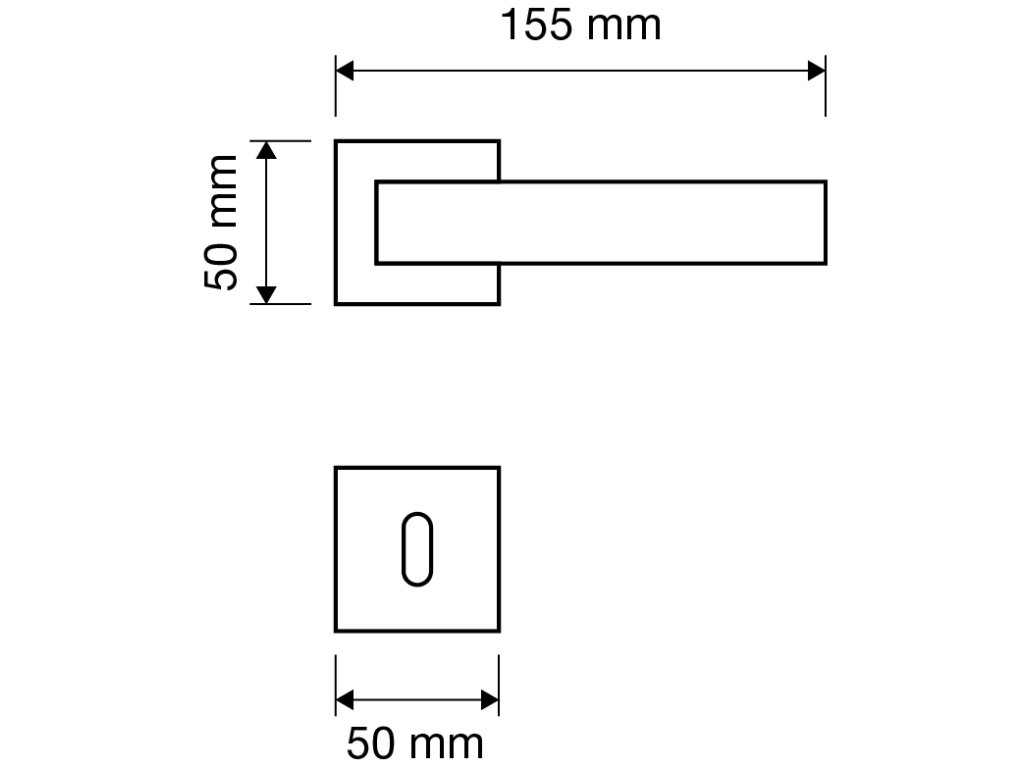 Rozetová kľučka na interiérové dvere s hranatou rozetou je vyrobená z materiálov vysokej kvality - mosadz a je povrchovo upravená. Rozeta má rozmery 50 mm x 50 mm.