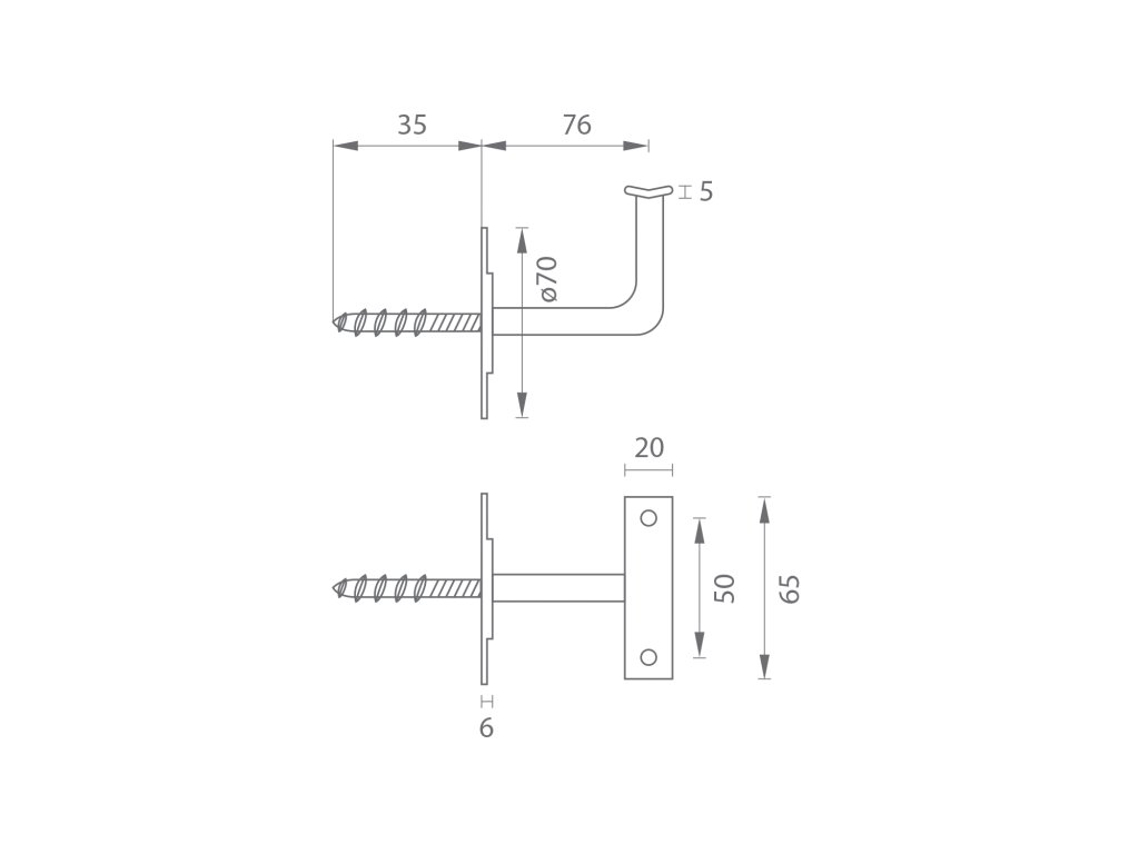 LR - DRŽIAK ZÁBRADLIA so zaoblenou plochou 70/76 NEM - nerez matná