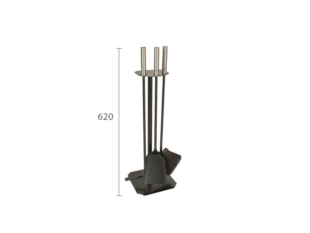Štýlová a praktická 3-dielna sada krbového náradia v elegantnom čiernom kovanom prevedení v kombinácii s nerezom je ideálnym doplnkom ku každému krbu či kachliam. Táto 3-dielna sada obsahuje všetky nevyhnutné nástroje - metličku, lopatku a kutáč na jednoduchú a bezpečnú manipuláciu s ohňom a údržbu krbového priestoru.