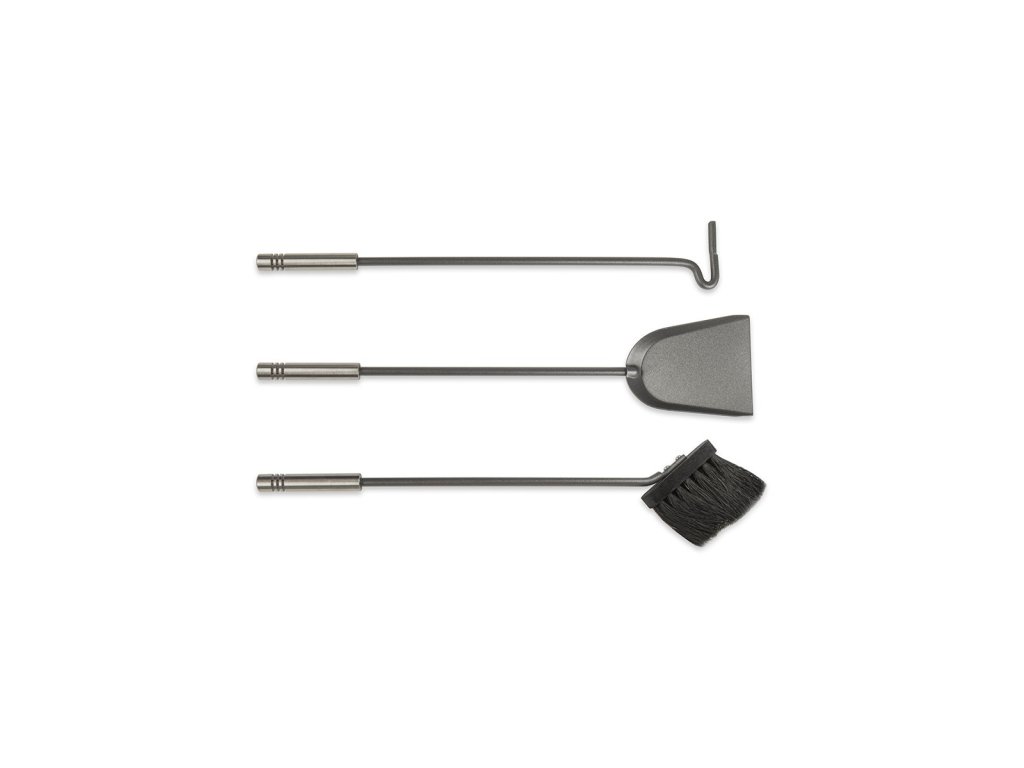 Praktická sada krbového náradia v antracitovom prevedení v kombinácii s chrómom lesklým je ideálnym doplnkom ku každému krbu či kachliam. Táto 3-dielna sada obsahuje všetky nevyhnutné nástroje - metličku, lopatku a kutáč na jednoduchú a bezpečnú manipuláciu s ohňom a údržbu krbového priestoru.