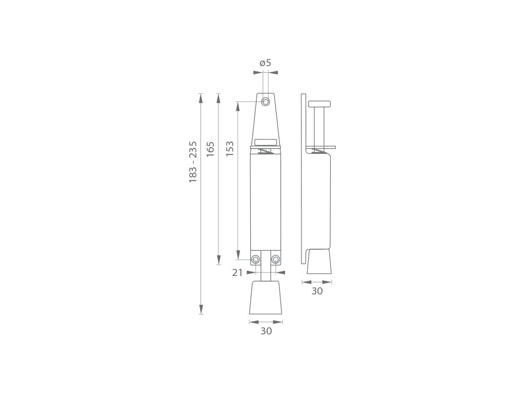 Praktický stavač dverí s jednoduchým ovládaním a spoľahlivým pružinovým mechanizmom. Je vyrobený z hliníka a je povrchovo upravený. Tento univerzálny doplnok umožňuje zaistenie dverí v ľubovoľnom uhle otvorenia.