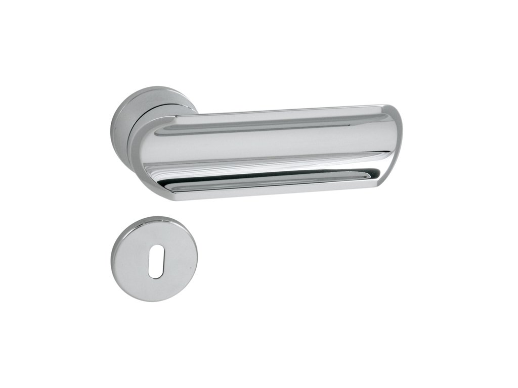Rozetová kľučka na interiérové dvere s okrúhlou rozetou je vyrobená z tradičného vysoko-kvalitného materiálu – masívna mosadz lisovaná za horúca a je povrchovo upravená. Technológia využívaná pri najkvalitnejších produktoch. Rozeta má priemer 50 mm.