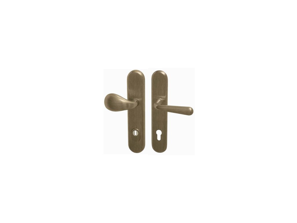 Štítová kľučka na vchodové a bezpečnostné dvere s bezpečnostným oválnym štítom s prekrytím cylindrickej vložky je vyrobená z materiálov vysokej kvality - mosadz a je povrchovo upravená.