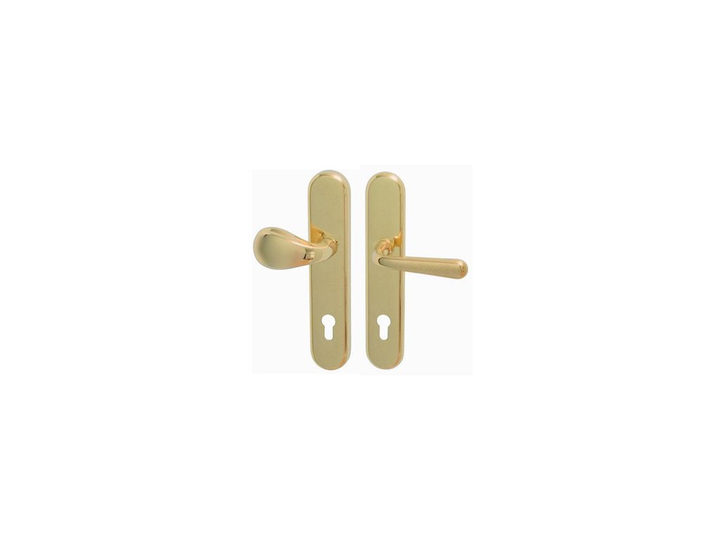 Štítová kľučka na vchodové a bezpečnostné dvere so spevneným oválnym štítom bez prekrytia cylindrickej vložky je vyrobená z materiálov vysokej kvality - mosadz a je povrchovo upravená.